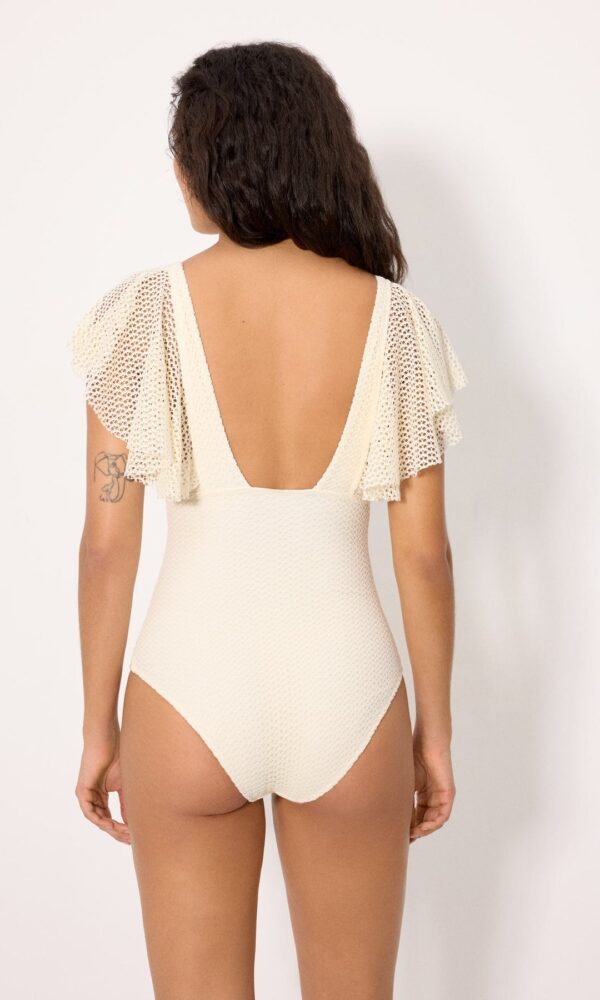 Bañador escote profundo tejido calado marfilBañador escote profundo tejido calado marfil