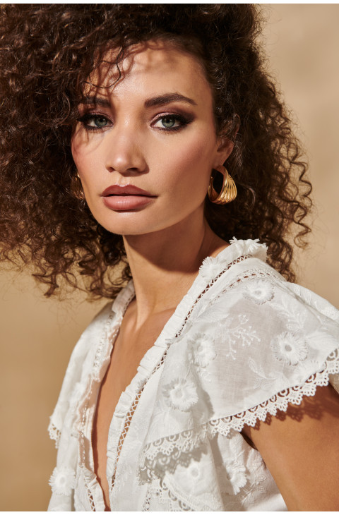 - Diseño: Volantes románticos y encaje bordado