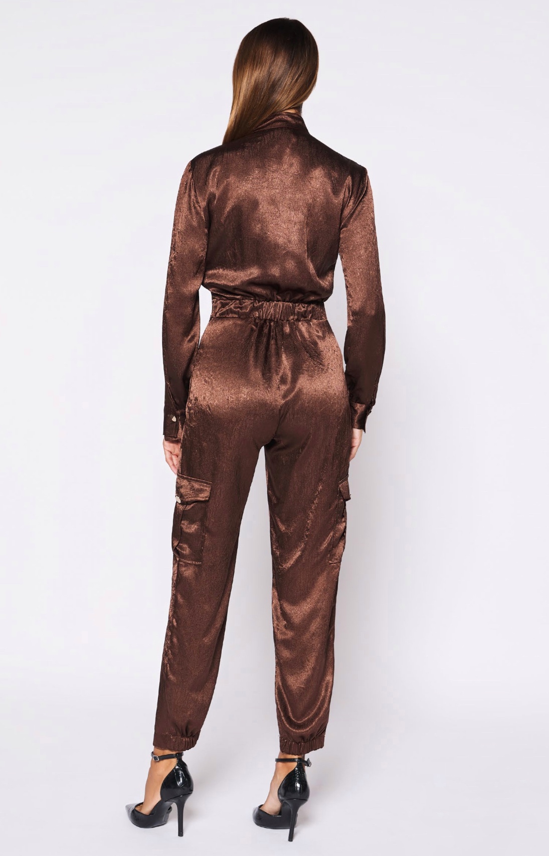 Mono Satén Marrón con Cremallera
