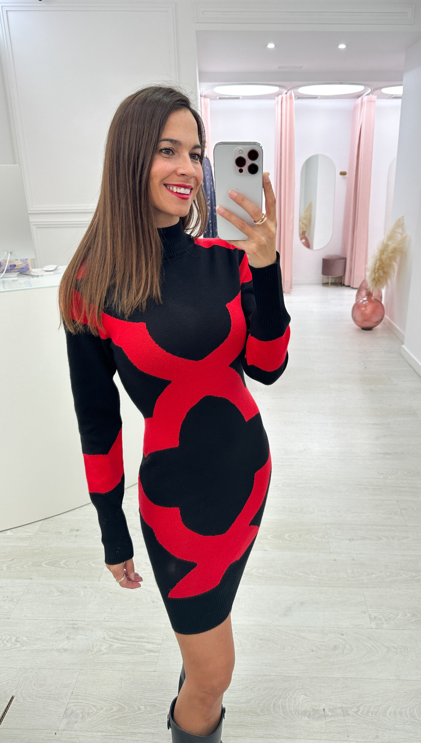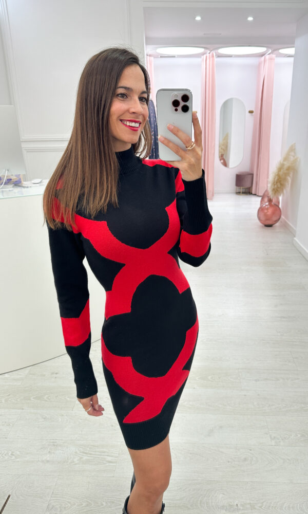 Vestido de punto elástico. Cuello y puños en ribete. Calidad premiun.